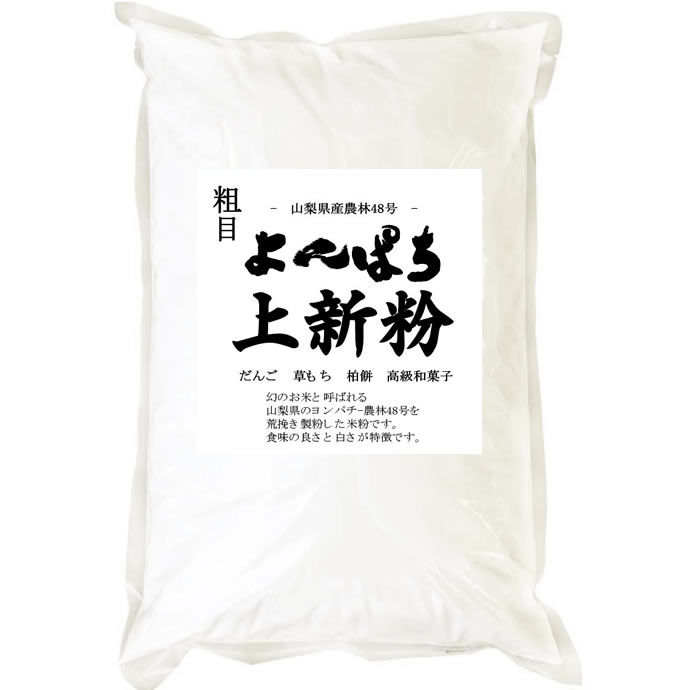 和菓子職人向けの高品質な米粉となります。厳選した高品質な山梨県産の農林48号を原料とした米粉。平均粒度150ミクロン。白度86以上(ケット計測)。でんぷん損傷度10%以下。アレルギー食品を工場内で扱わない「米粉製造限定ラインでの製粉」の米粉です。