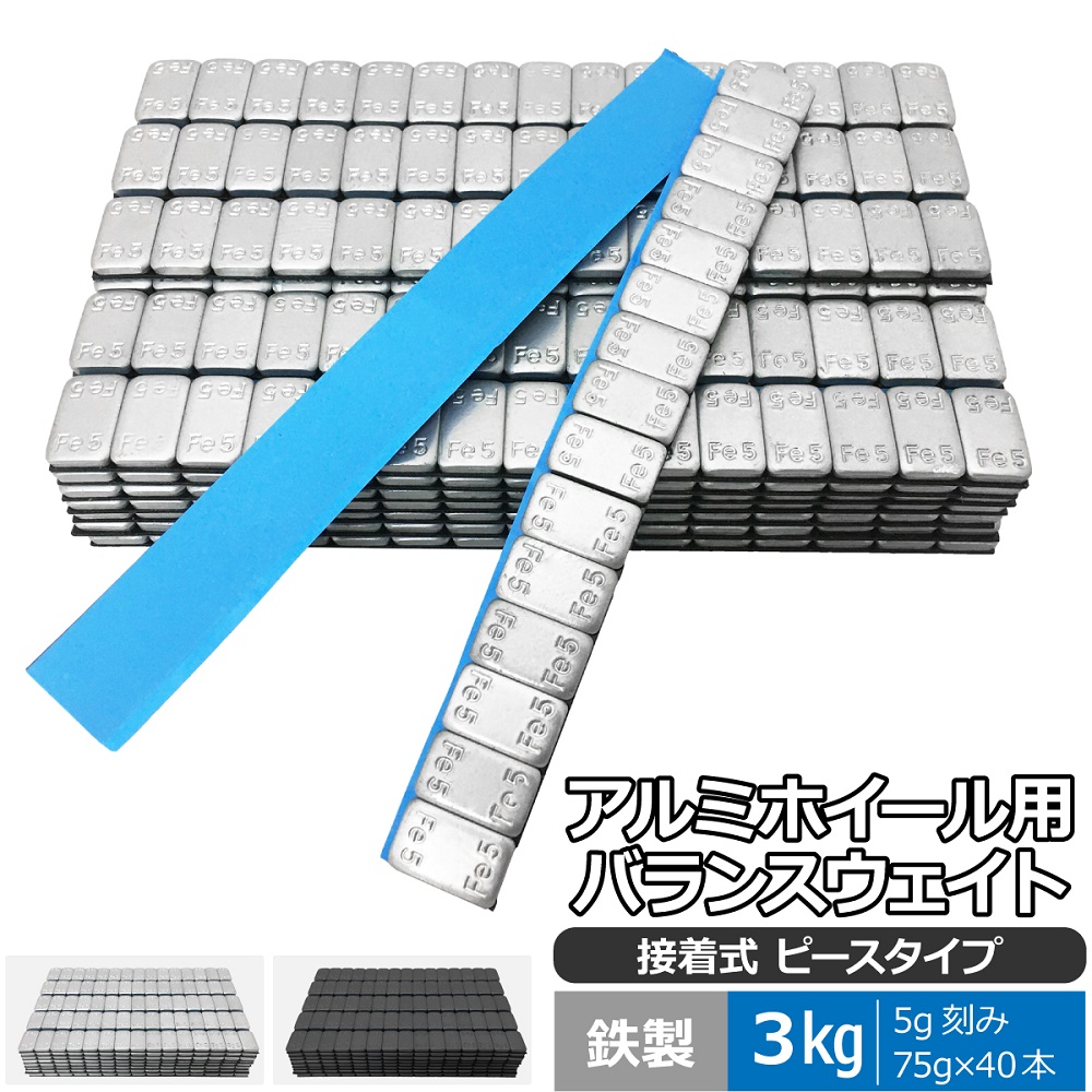 | [バランスウェイトとは?]ホイールは精密に成形されているもののわずかに重たい箇所があり、 そのまま回転をすると微妙なずれが発生して、走行やハンドル操作に影響が出てしまいます。 このバランスを調整せずに走行するとホイールが暴れたり、重大なトラブルを誘発する恐れがあります。 バランスウェイトは自動車に取り付けたホイールがぶれることなく回転するように微妙なバランスを整え、 安全で快適な走行を実現する為に取り付けるおもりです。 [使いやすい5g刻みのピースタイプ] 1本に5gの薄型の鉄製重りが15個連なったピースタイプ。 それぞれのピースの間に切れ目があり、はさみで必要な分を簡単に切り分けて使えます。 ウェイトの裏面には強力な両面テープがついているのでホイールへと簡単に取り付けができます。 |
