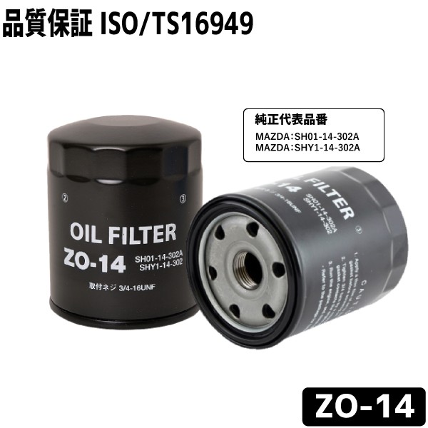 交換頻度の高いオイルフィルターを低価格・純正品並み高品質で販売しています。国際品質規格ISOを取得、安心のマツダ車用適合ZO-14オイルエレメントです。