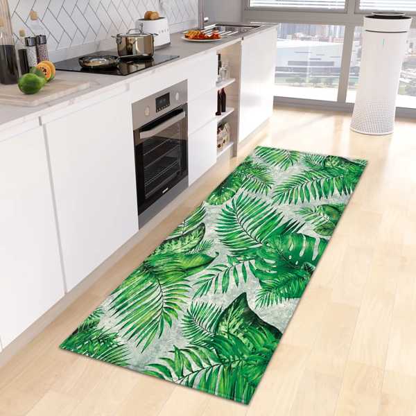 【互換品】VIKAMA グリーン熱帯 葉キッチンマット玄関ドアマットノンスリップ洗えるキッチンカーペットリビン