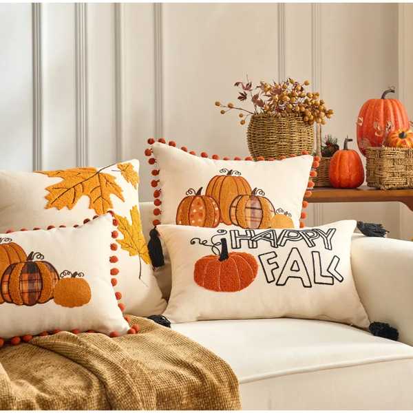 【互換品】フェスティバル秋カエデ 葉枕カボチャ刺繍クッションカバー現代装飾家 装飾枕カバー寝具