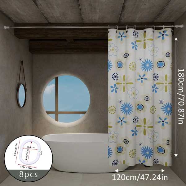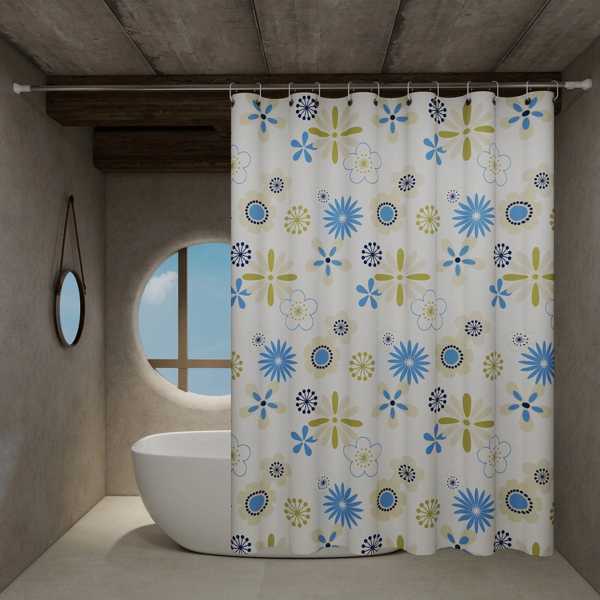 【互換品】爽やかで花柄 仕切りカーテン バスルーム シャワーカーテン トイレ シャワーカーテン 青 白 模様が