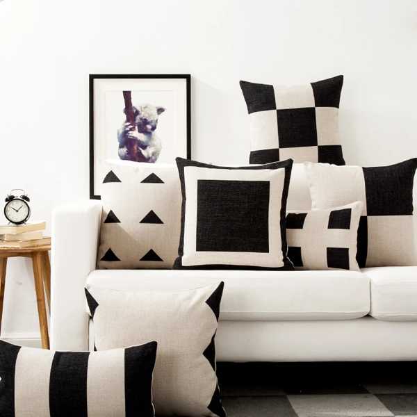 【互換品】北欧幾何学黒白クッション枕カバー家 装飾オフィスソファリネン枕カバー 45x45cm