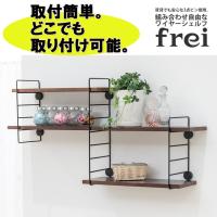 ウォールシェルフ 木製 壁 棚 ラック おしゃれ シェルフ 賃貸 トイレ キッチン 玄関 石膏ボード 壁面収納 ウォールラック 壁に付けられる家具 ウッド 棚受け diy オシャレ 欧風 北欧 壁掛け飾り棚 frei<Frei-D>棚板45cm×2枚 ワイヤー(ブラックショート)×2本
