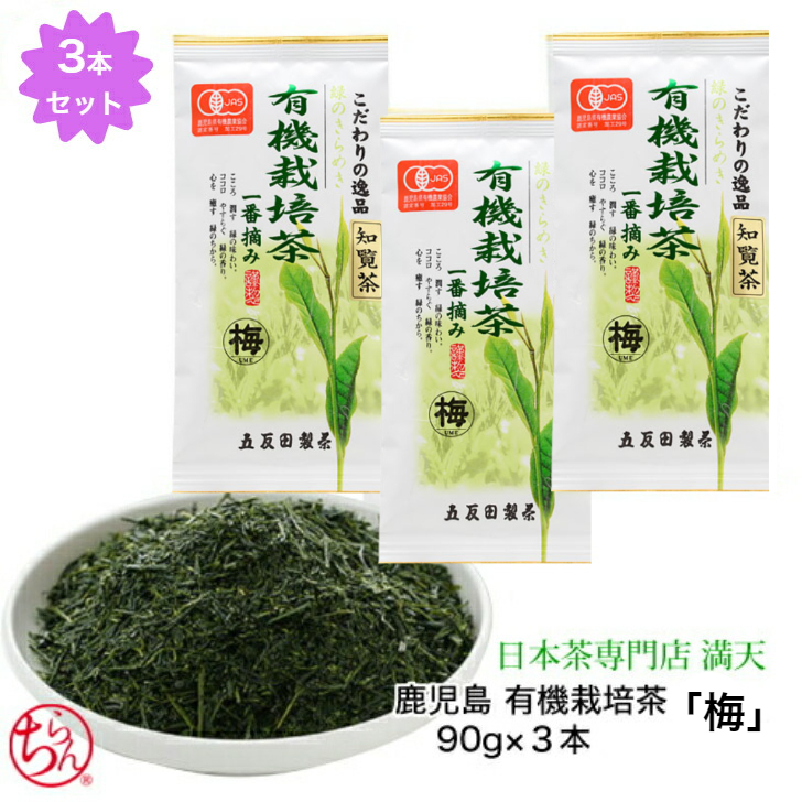 知覧茶 有機栽培茶 「梅」3本セット オーガニック 無農薬 日本茶 緑茶 お茶 茶葉 プレゼント ギフト JAS認定 新茶 深むし茶 爆買いweek