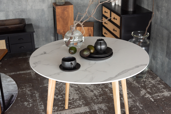 大理石調 シンプル おしゃれ スタイリッシュ テーブル ダイニング 丸形 90cm 机 食卓 ストーン コンパクト ホワイト グレー 白 木目 ベージュ 木製