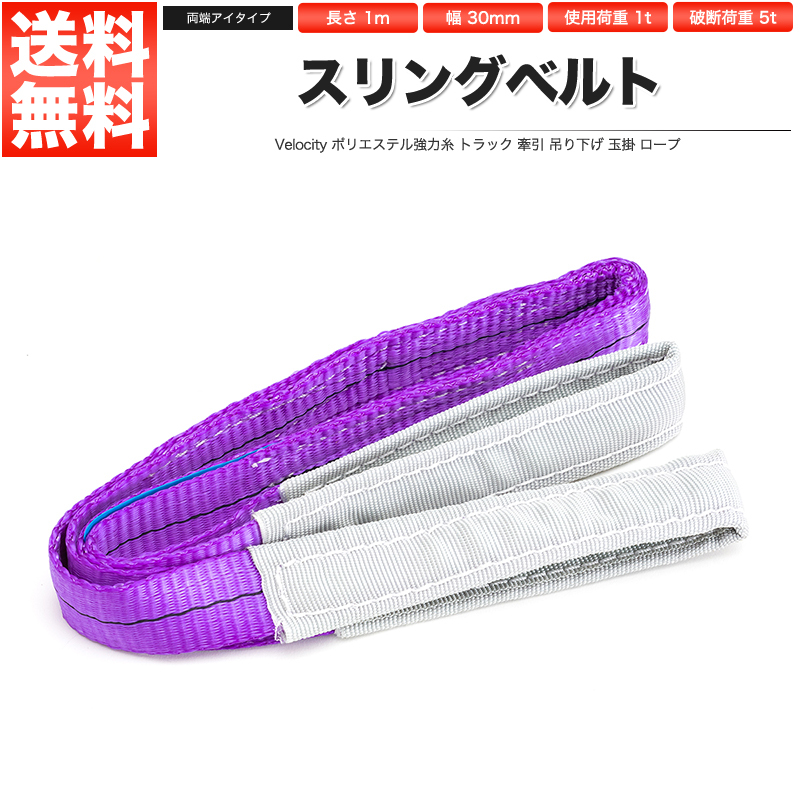 スリングベルト 荷重1t ベルト長1m 幅30mm 両端アイタイプ