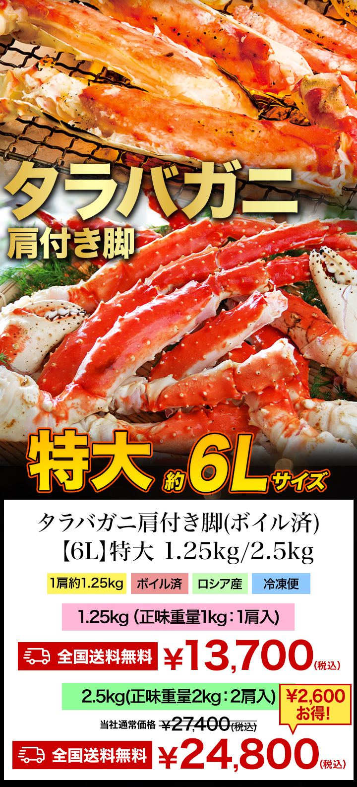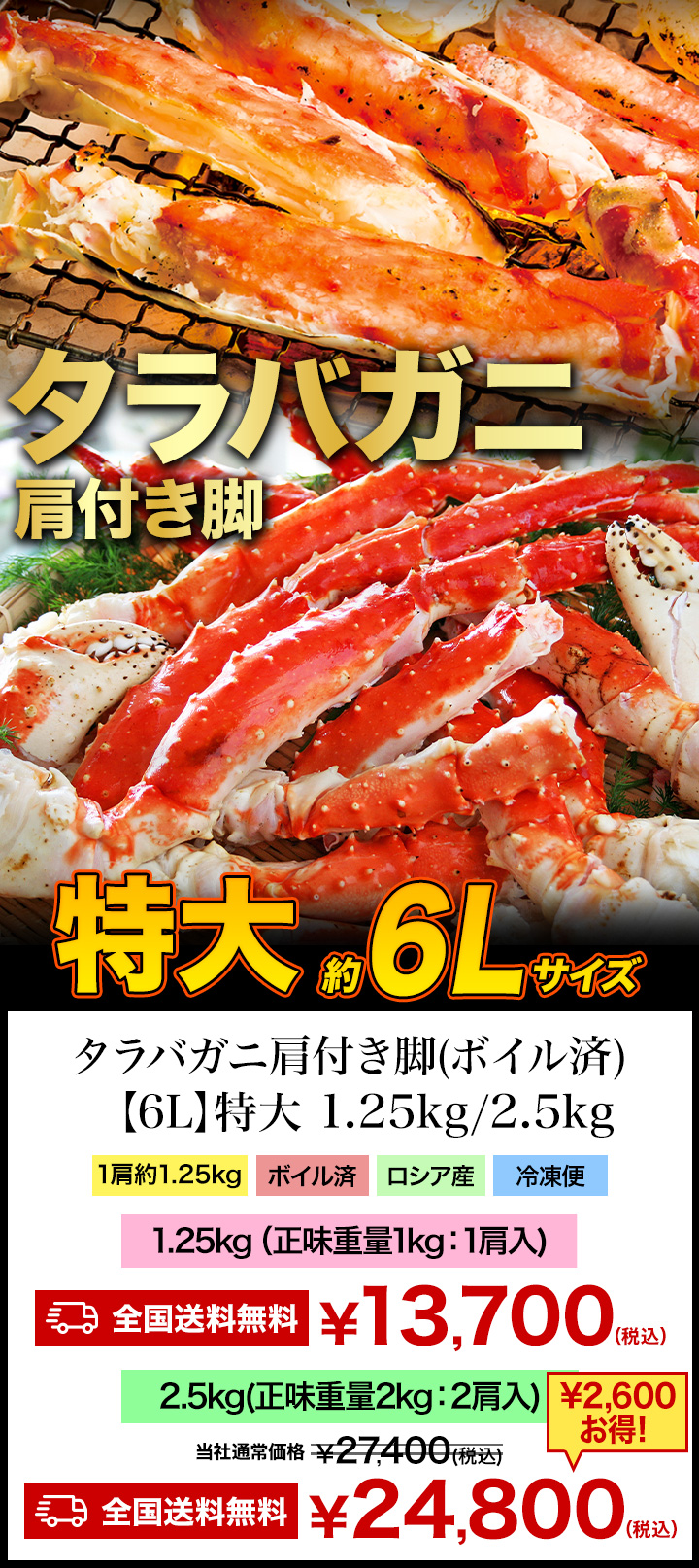 | 特大タラバガニ肩付き脚(ボイル済) |