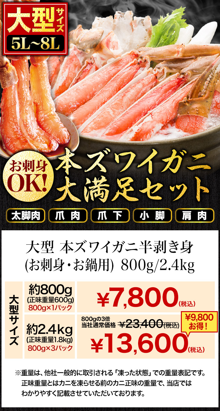 | 大型本ズワイガニ半剥き身(お刺身・お鍋用) |
