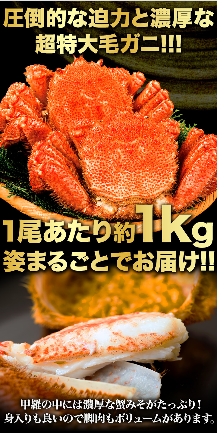 決算大SALE中 1尾 約1.2kg 超特大毛ガニ (ボイル済) カニ かに ロシア産 蟹 毛蟹 毛がに カニ味噌 蟹ミソ 甲羅 満足良品館カニ 送料無料