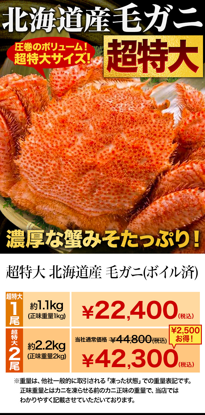 | 特t特大 北海道産 毛ガニ(ボイル済) |