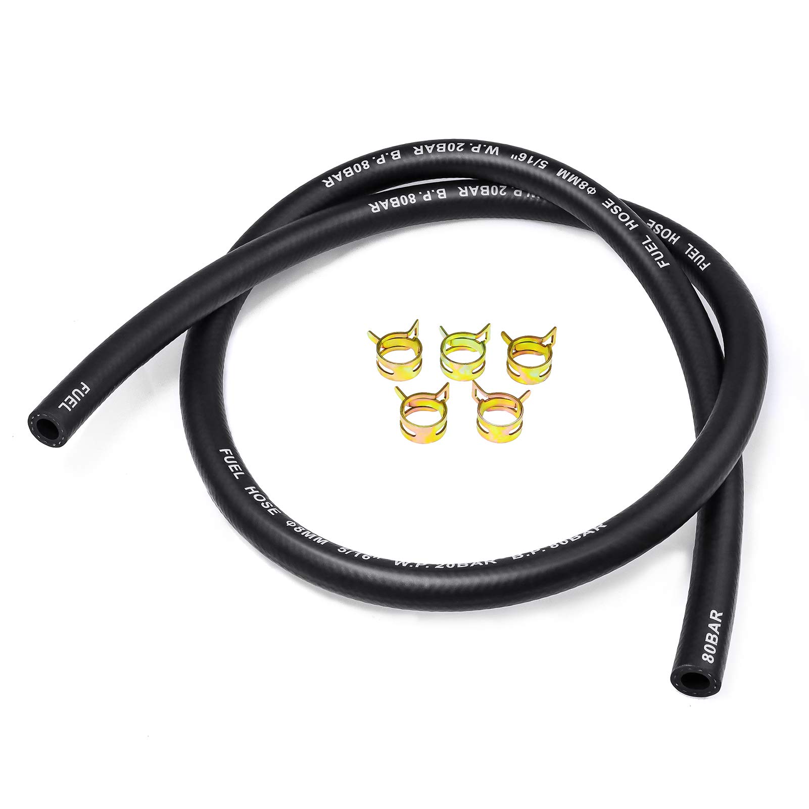InduSKY 燃料ホース 内径8mm 外径14mm ガソリンホース 3層ホース 全長1M 耐油 耐圧 耐候 専用ホースクランプ 5個付き 自動車用