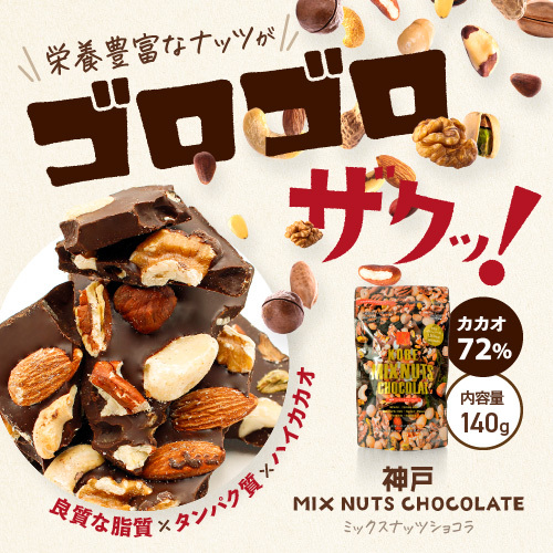 | カカオマス(外国製造)、砂糖、アーモンド、カシューナッツ、くるみ、ココアバター、ピーカンナッツ、ピスタチオ、ヘーゼルナッツ、マカダミアナッツ/乳化剤、香料、(一部に乳成分・アーモンド・カシューナッツ・くるみ・大豆を含む) |