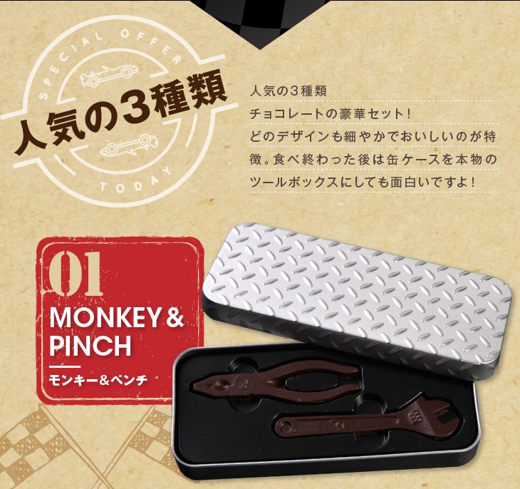 チョコレートで精巧に作られた人気の工具チョコ(モンキー・ペンチ・スパナ)