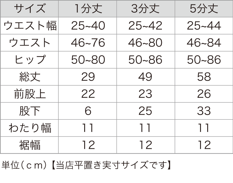 1分丈、3分丈、5分丈の3タイプをご用意し、お好みの着こなしや用途に合わせてお選びいただけます。