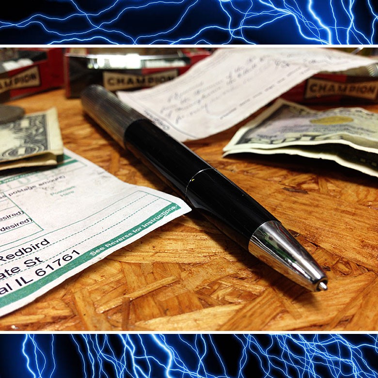 一見するとフツ〜のボールペンだけど、ペン先を出そうとノックを押した瞬間、電気ショック!!
