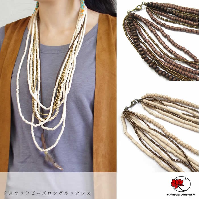 | 【メール便対応!】 8連ウッドビーズロングネックレス |