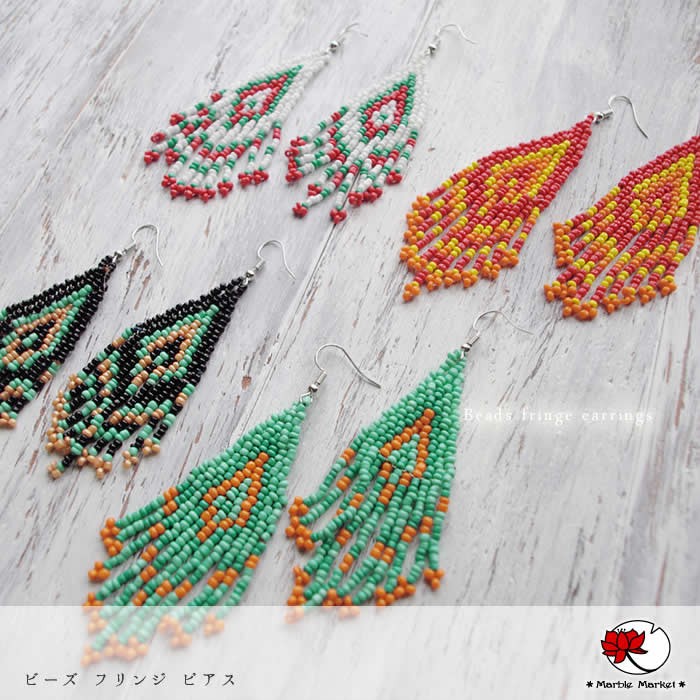 クールでネイティブな雰囲気を手軽に取り入れられ、ハンドメイドのぬくもりも感じる、ビーズ製のピアス。