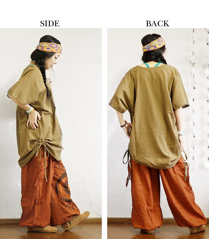 | 【staff】カナエ 158cm/普段:M/細身 着丈はウエストのくびれで穿くとくるぶし下くらい、腰で穿くと裾にもたつき感が出てエスニックらしい雰囲気のあるルーズな印象に。レギンスの上からでもゆったりとしたサイズ感です。ウエストのゴムもゆとりがありますが、しっかりとホールド感もあり軽い穿き心地です。アクティブに動けるアラジンパンツは今期オススメです♪ |