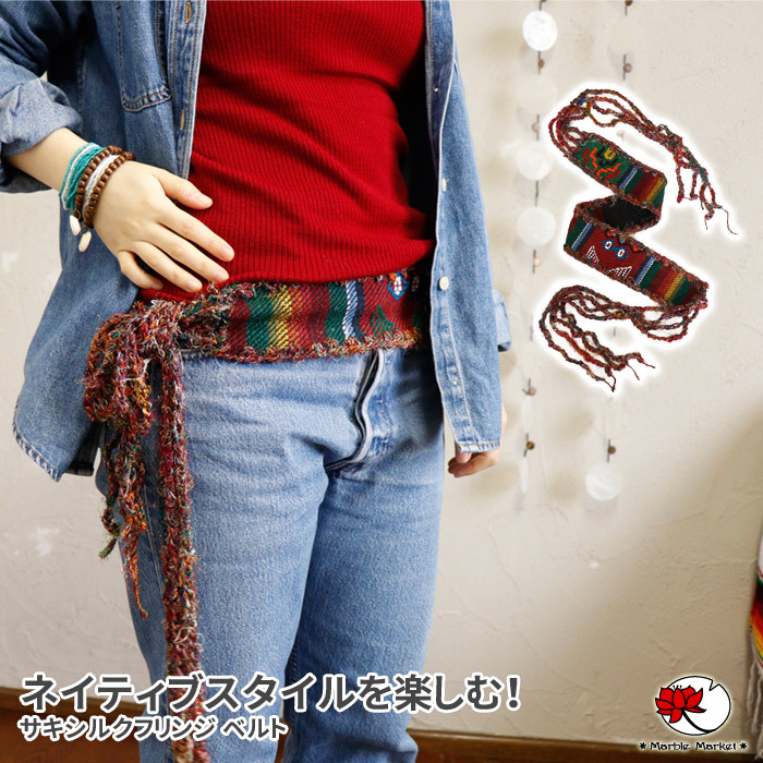 | 【メール便可】 オリジナル!ネイティブスタイルサキシルクフリンジベルト |