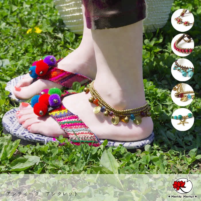 アンティークな味わい深い真鍮を使用したエスニックなアンクレットが登場。シンプルなデザインで、様々なコーディネートにマッチします。ビーチやフェスなどの野外でのイベントにもおススメ。