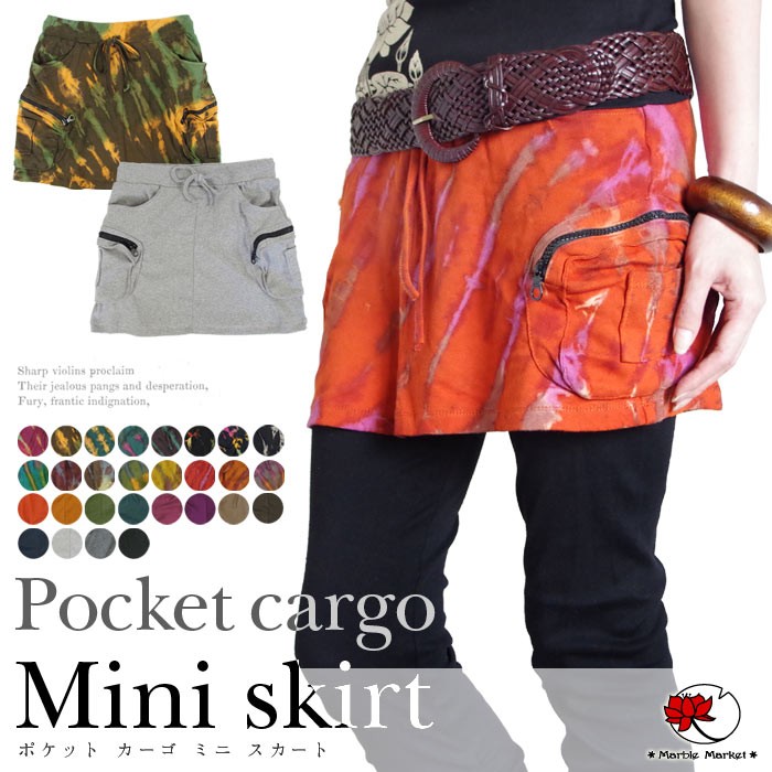 コメント: いつものスタイルに合わせたい、カラフルなカーゴスカート。広がりすぎない絶妙なシルエットで体型をカバーしてくれます。サイドのファスナー付きポケットが程よいボリュームでアクセントに。オールシーズン活躍する綿100%生地、ストレッチ素材で動きやすく、ストレスフリーな穿き心地。合わせやすいシンプルな無地カラーと一枚で存在感のあるタイダイ染めカラーをご用意。スポーティなカジュアルなコーデからナチュラルなスタイル、タイダイ染めや柄物を合わせてエスニックスタイル等、着回しが利く一枚です。