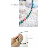 天然石のゴツゴツとした風合いと、真紅のビーズがバランスの良いナチュラルな雰囲気。長さ調整も容易なため、幅広く使いやすいです。ターコイズはヘルシーなイメージで、デイリーに使いやすいカジュアル感が人気です。シンプルなのでカジュアルから結婚式などのフォーマルな席まで、場面を選ばず活躍します。