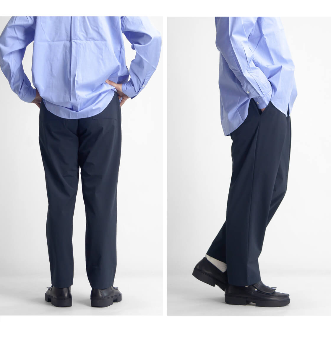 ブランド定番の綺麗なテーパードシルエットは変わらず、太目でレングスも長めな「Happy 4way WIide Pants」。