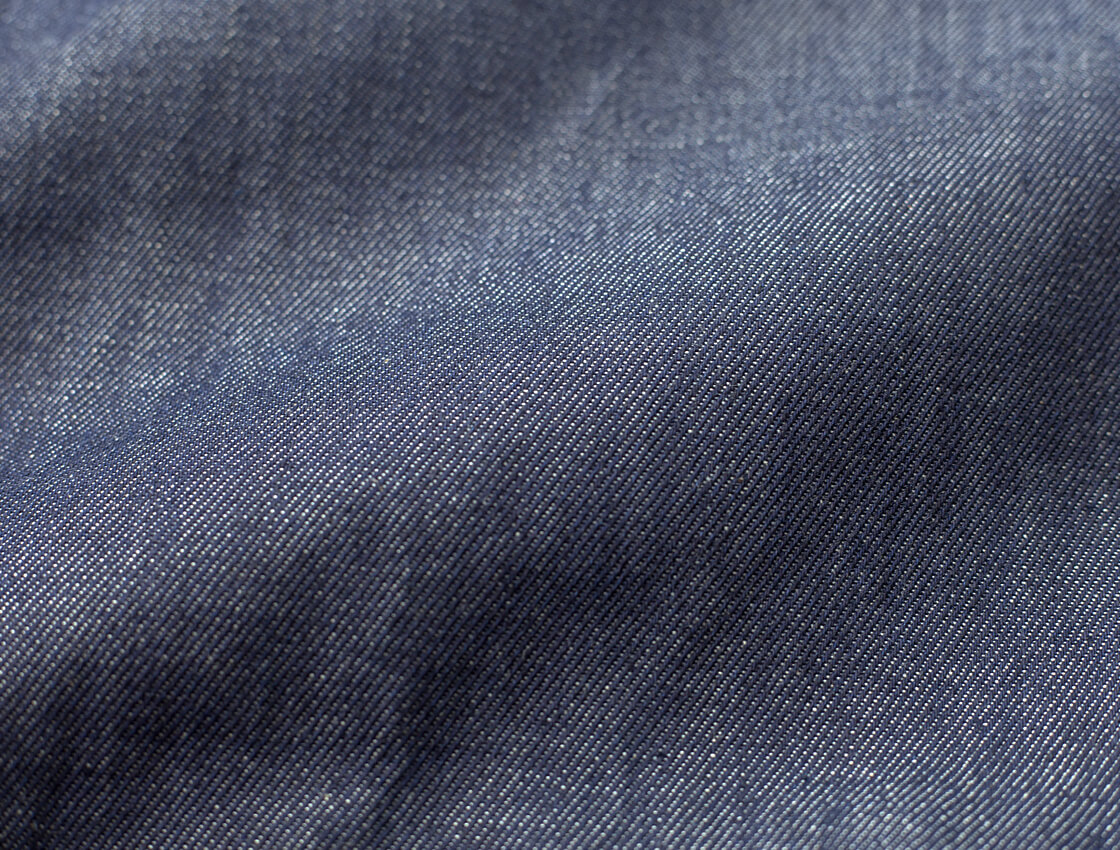 本体に用いているのは、デニムの一大産地である備後地方で製作される程よい厚みの11オンスのセルヴィッチデニム生地。旧式のシャトル織機で織られたセルヴィッチデニム生地は、コンピューター制御の革新織機にはない、凹凸感や手織りに近いヴィンテージな風合いが持ち味。もちろん経年による変化もムラ感のあるヴィンテージな風合いに。着用の始めは、ハリがありますが、着用を繰り返すことで柔らかく馴染んでいきます。程よい11オンスの厚みは重すぎず、夏以外のロングシーズン着用頂けるというのも魅力です。