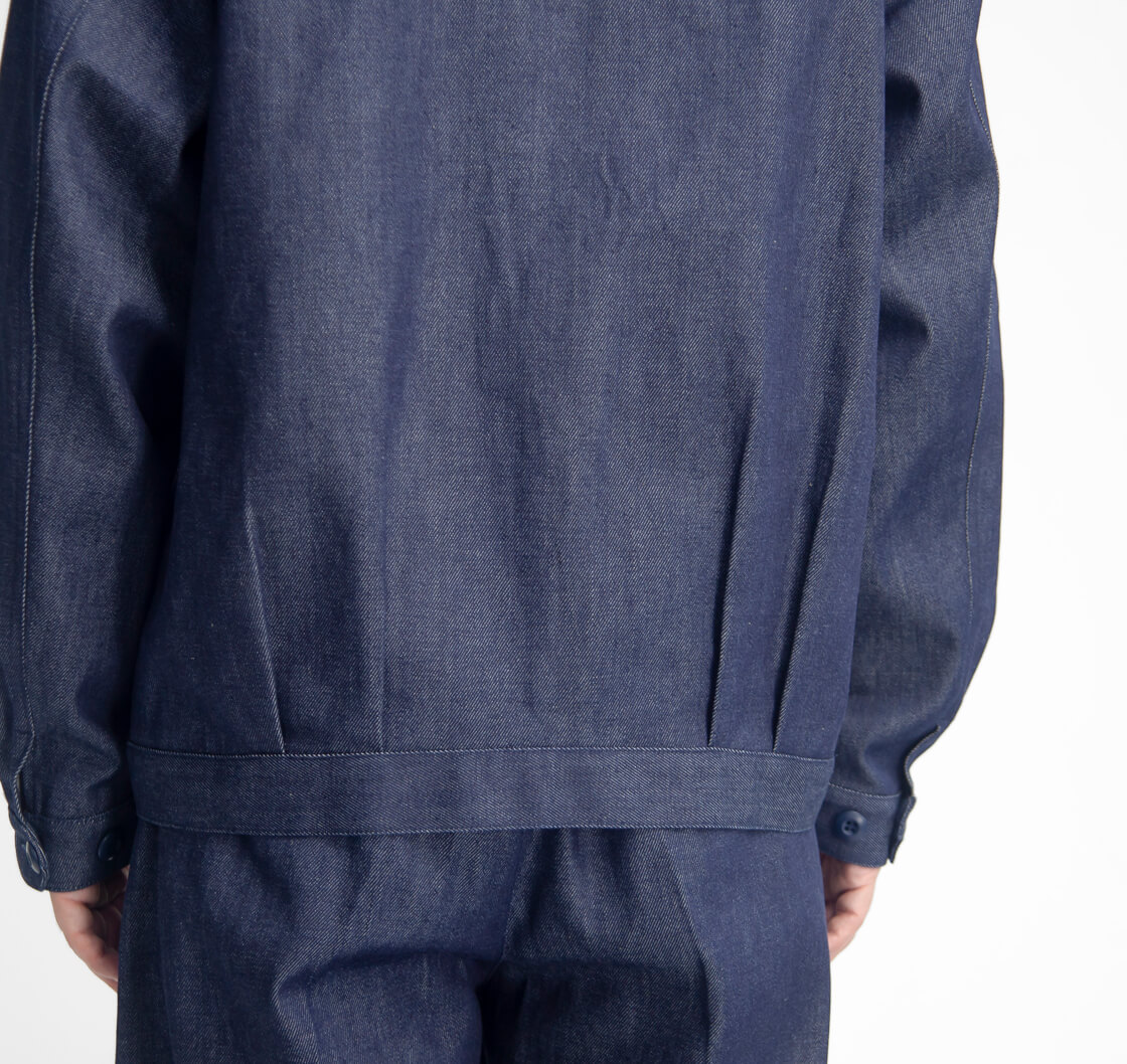 裾にタックの入ったイタリア軍のアイクジャケットがベースになったセルヴィッチデニムのトラッカージャケット。