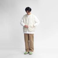 3サイズを着用しました。ゆとりを持ったややワイド目なシルエットで余裕を感じます。ゆったりな服が多い僕の場合、2サイズにすると丈が短くなってしまうので、3サイズの方がレイヤードしやすいなと感じました。