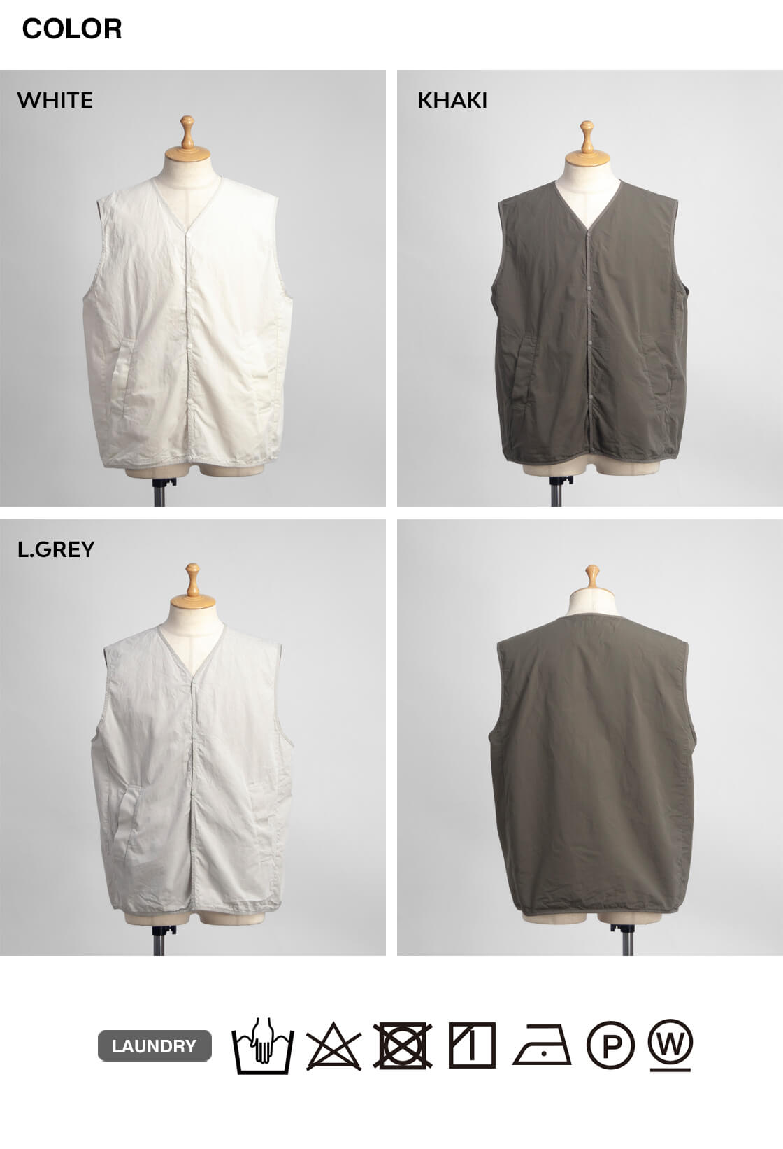 ホワイト、カーキ、ライトグレー