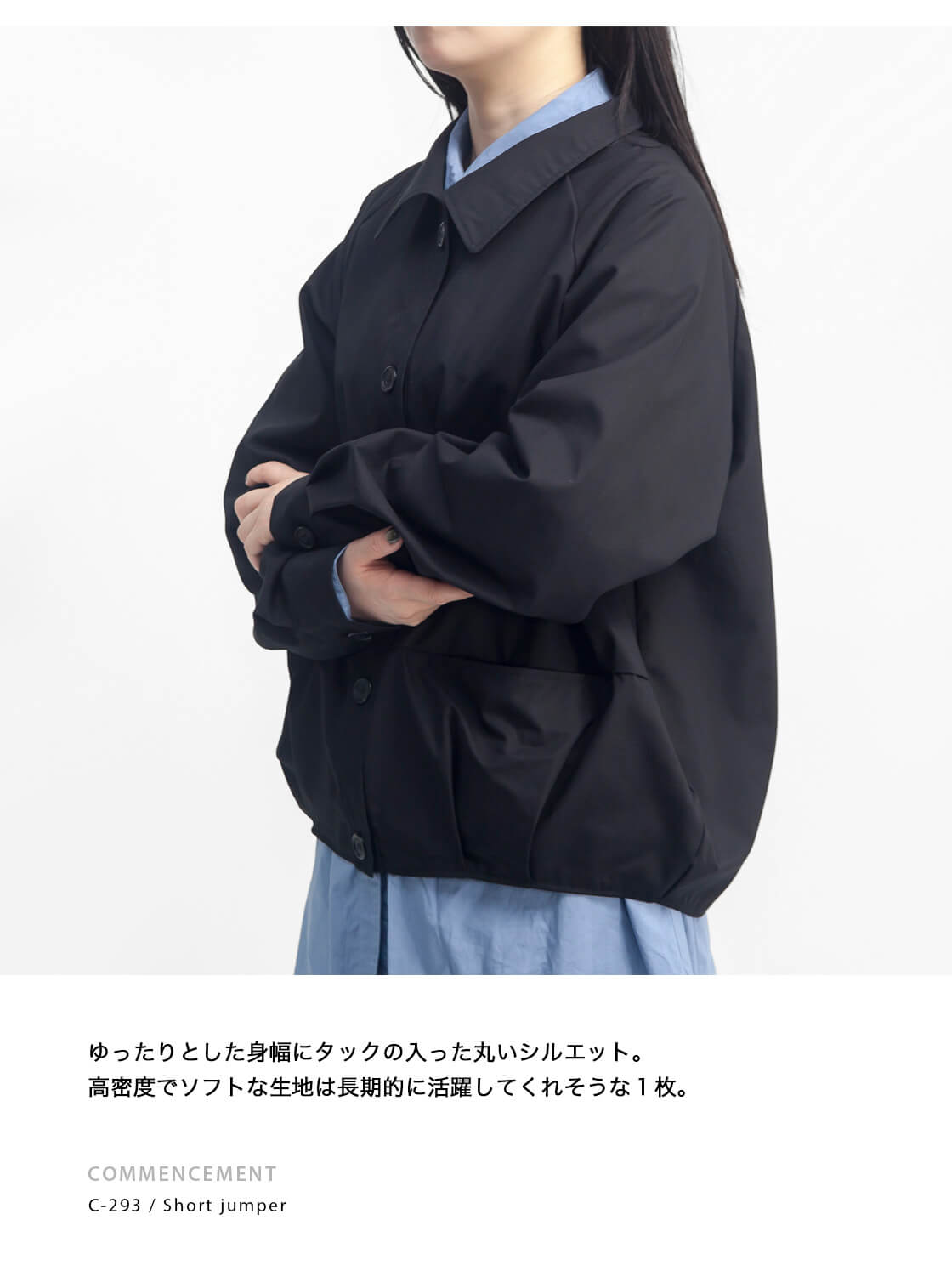 COMMENCEMENT(コメンスメント)より、高密度でソフトな生地を使用したゆったりとした身幅のショート丈ジャンパーをご紹介。