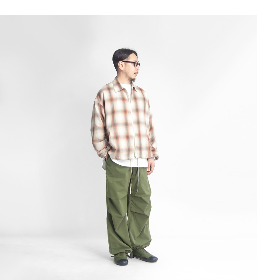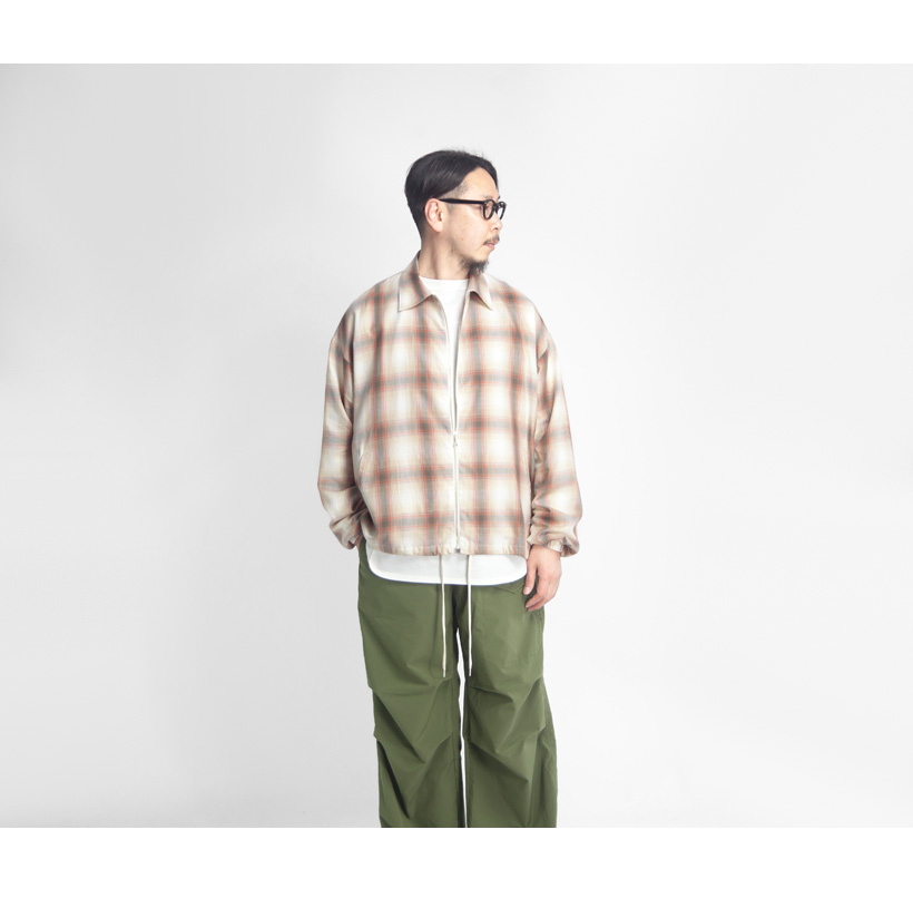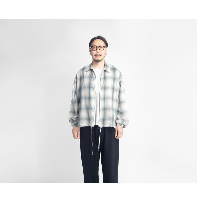 H.UNITからレトロでオンブレチェックに落ち感のある風合いが雰囲気抜群、シャツ感覚で羽織れるコーチジャケットの様なデザインのジップジャケットをご紹介。