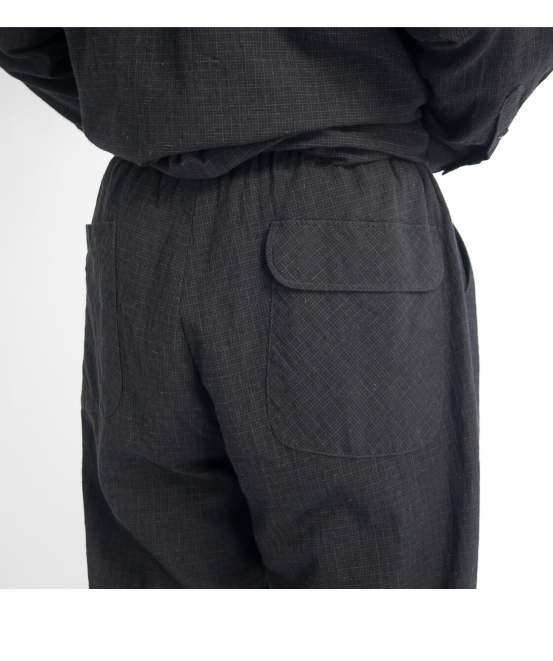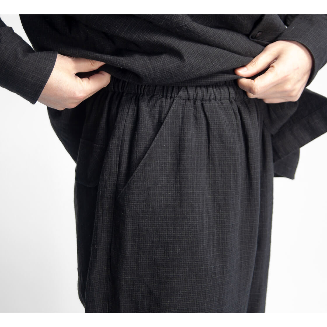 ネップの入った、雰囲気抜群な綿麻チェック生地を用いたH.UNITのイージーパンツ「C/L check easy pants」。