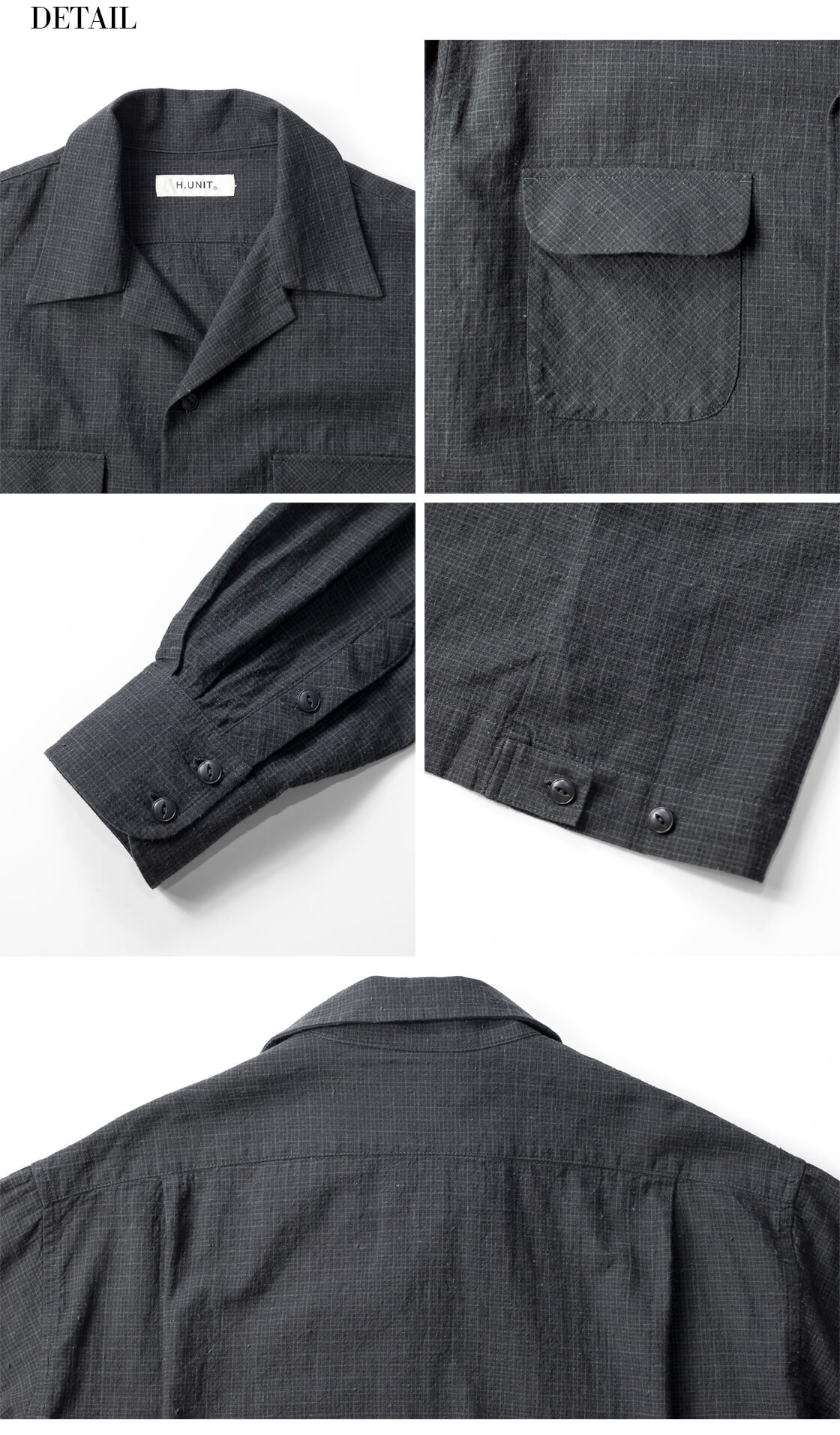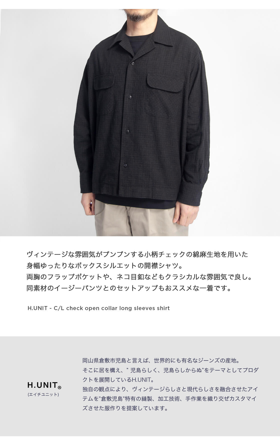 H.UNIT(エイチユニット)から、ヴィンテージな雰囲気がプンプンする小柄チェックの綿麻生地を用いた、ワイドなボックスシルエットの開襟シャツをご紹介。