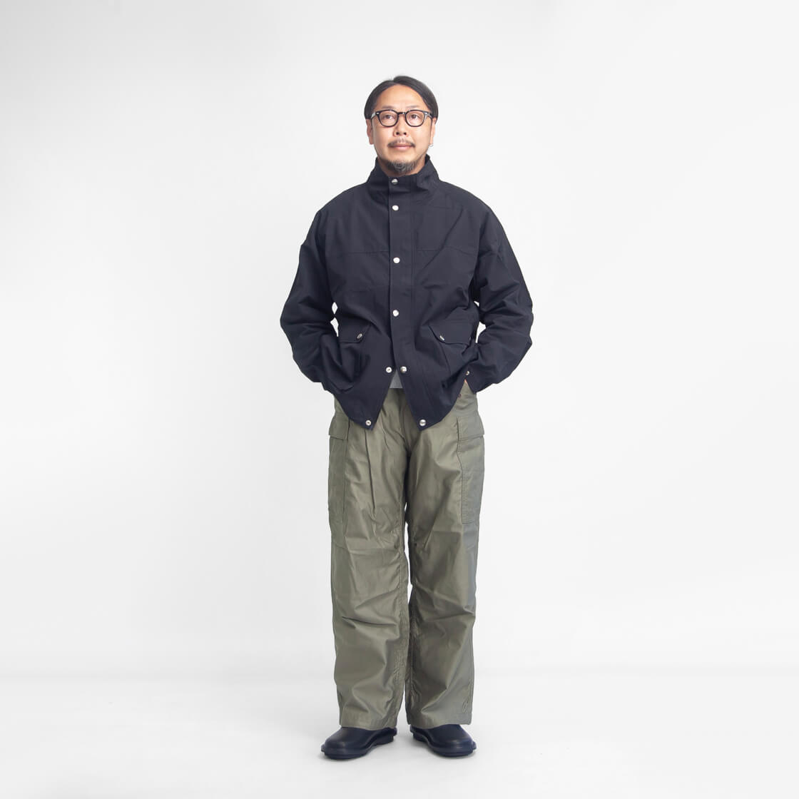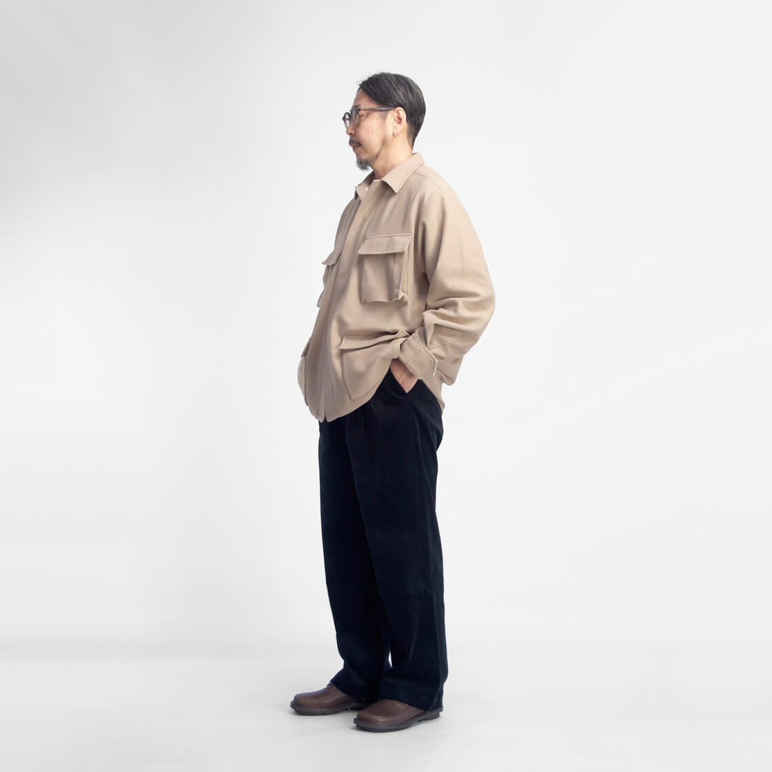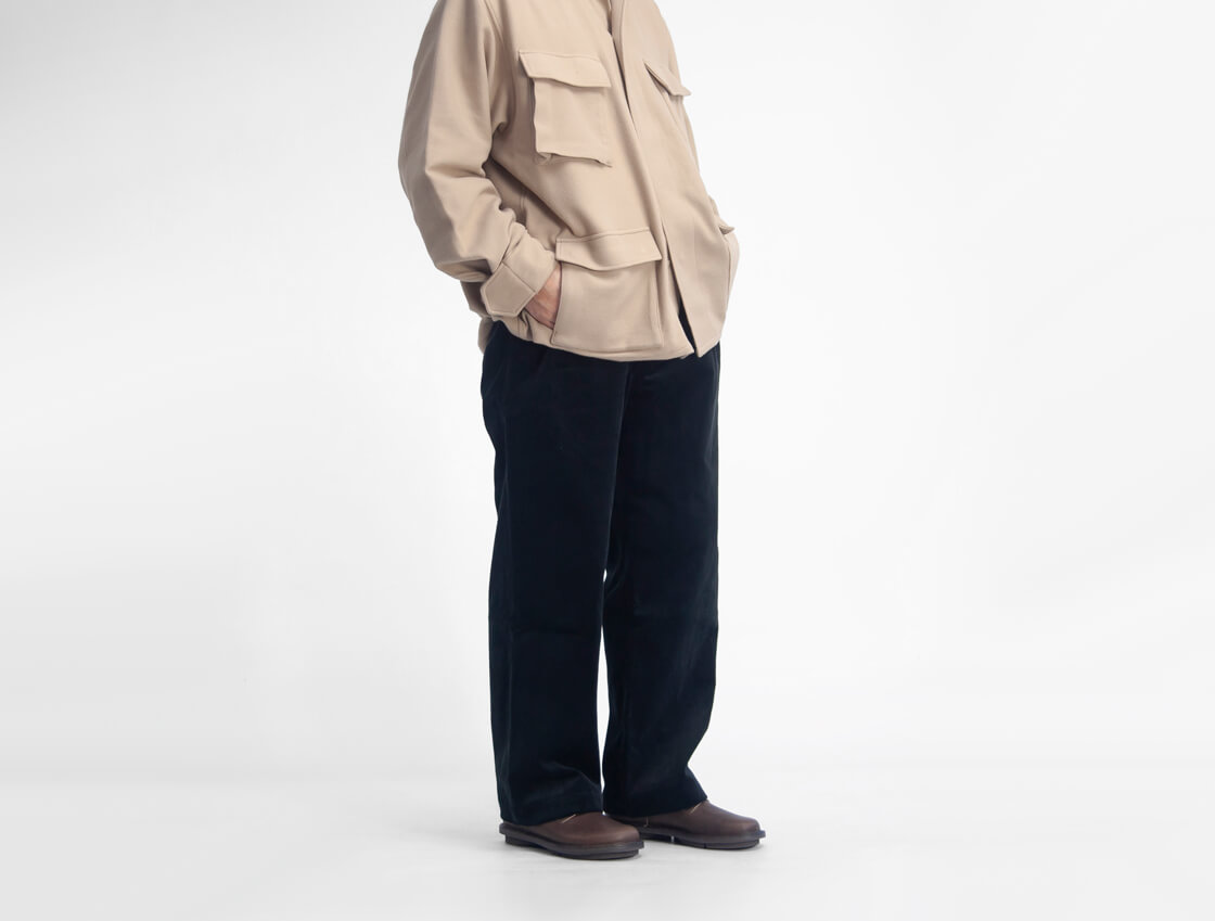 身長170cm、体重62kgの男性が40サイズ着用。(普段はスニーカーで26.0cm前後を着用)
