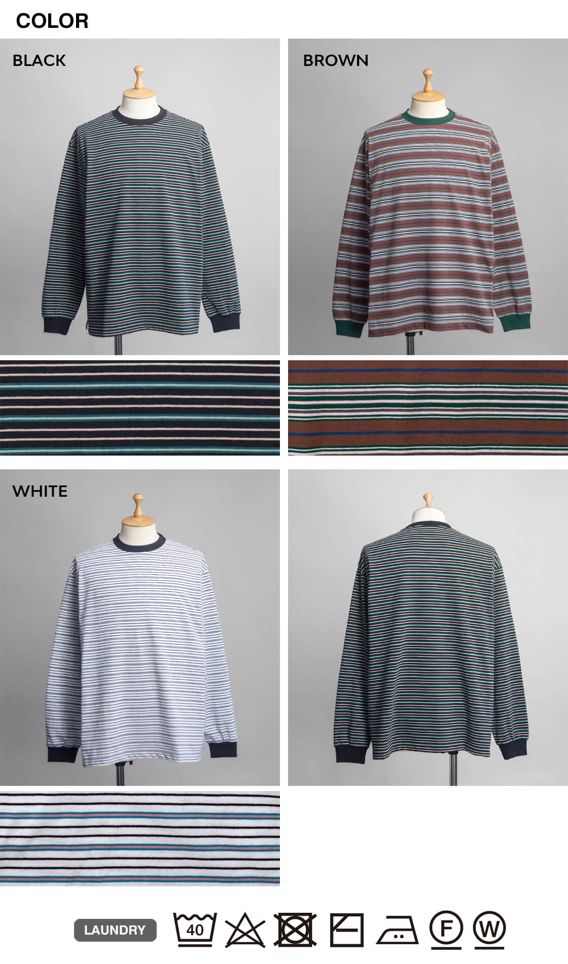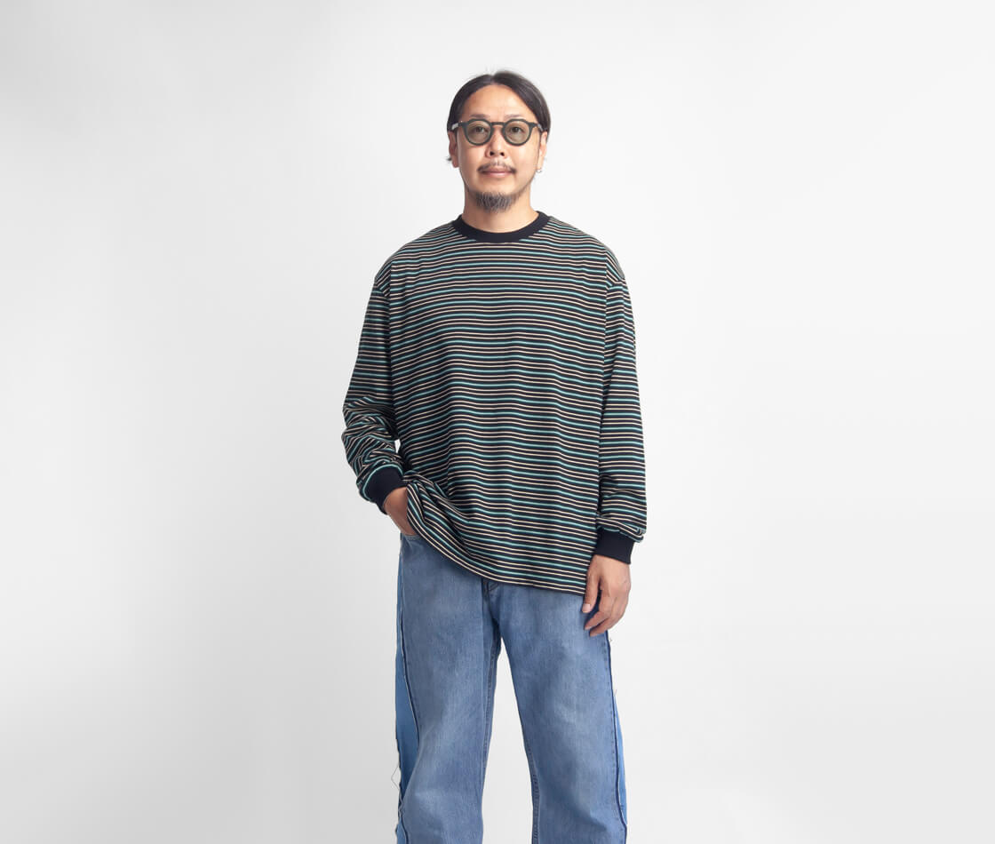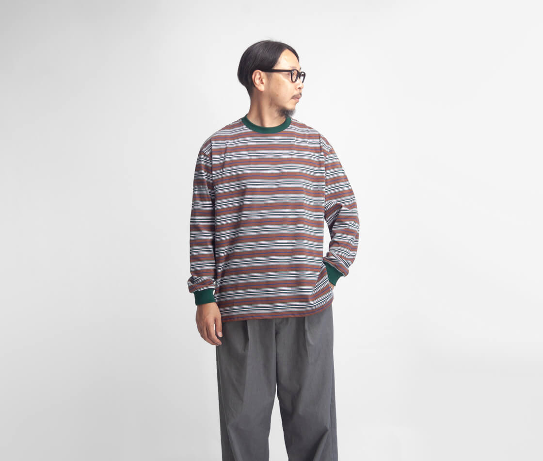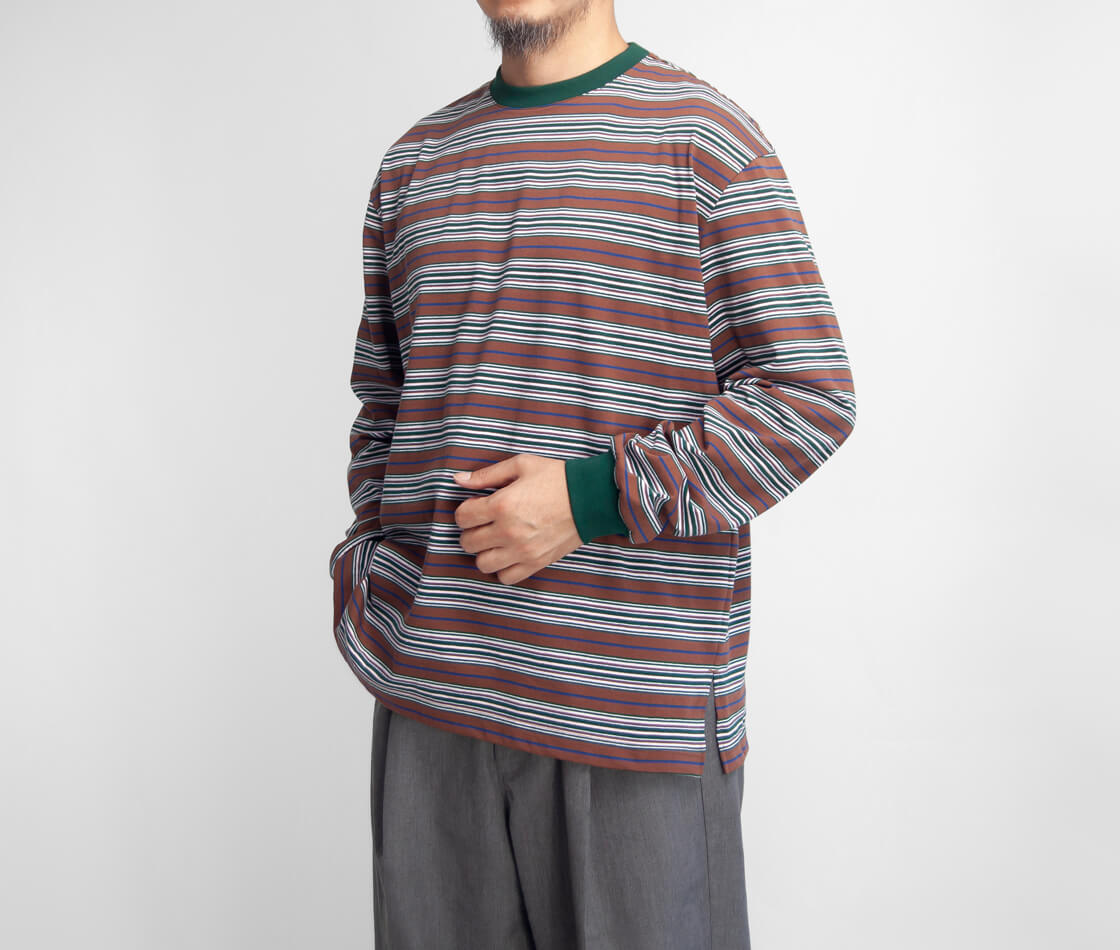 軽やかでドライな生地感に、レトロな雰囲気のマルチボーダーが効いたロンTEE。