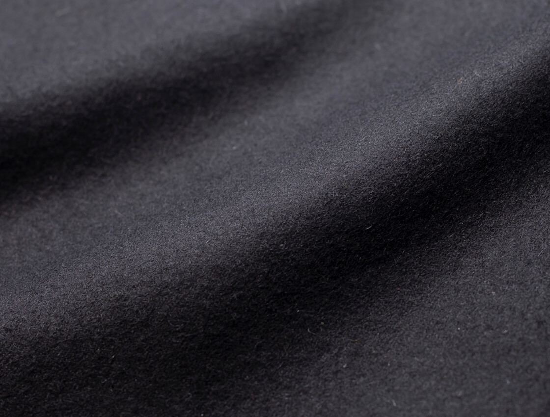 程よい厚みとハリがありながら、重くなりすぎないウールメルトン生地。