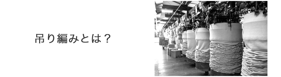スウェット好きな方なら一度は耳にしたことがあるであろう吊り編み裏毛。これは旧式の吊り編み機によって編みたてられた裏毛生地(スウェット)のことです。吊り編み機は1816年にフランスで開発されましたが、もはや世界でも稼働しているものはなく、和歌山県内の数軒で稼働するのみという希少なマシン。吊り編み裏毛は世界広しといえど和歌山産のものしか存在しないということなのです。吊り編みは糸の自重だけを頼りに、1時間に約1mという低速で編まれます。一日に編めるのは、わずかスウェット8着ほど。生産効率が悪すぎるため、他の編み機に置き換わっていきました。吊り編み機で編む生地は、自重のみで糸に余計な力をかけず編み上がった生地も強制的に巻き取りません。ゆっくり空気を含みながら編まれるためふっくら嵩高で柔らかく、洗濯を繰り返しても型崩れしにくいのです。まるで手編みのような豊かな表情は最新編み機から生まれるスウェットとは段違いの風合いを持ち、世界が羨むスウェット製品へと仕上がるわけです。