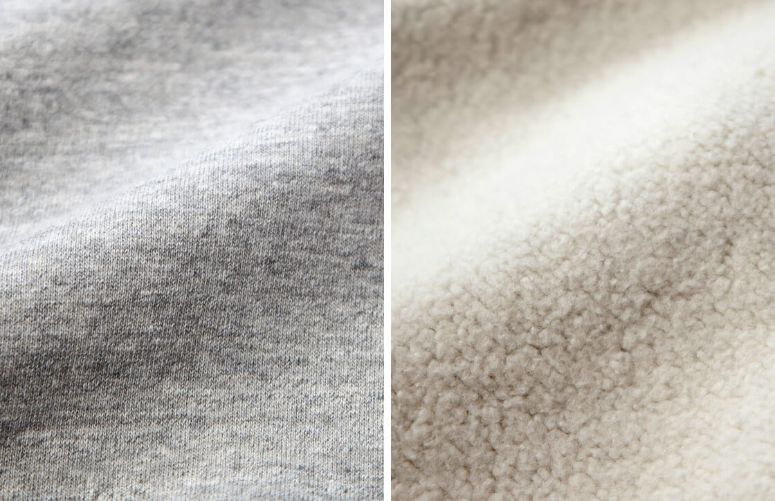 希少な吊り編み機によって生み出された裏起毛生地。ふっくらした柔らかさ、ふくよかな着心地は極上の一言。