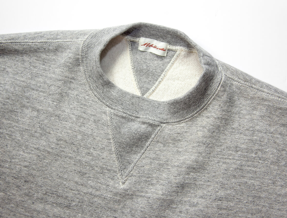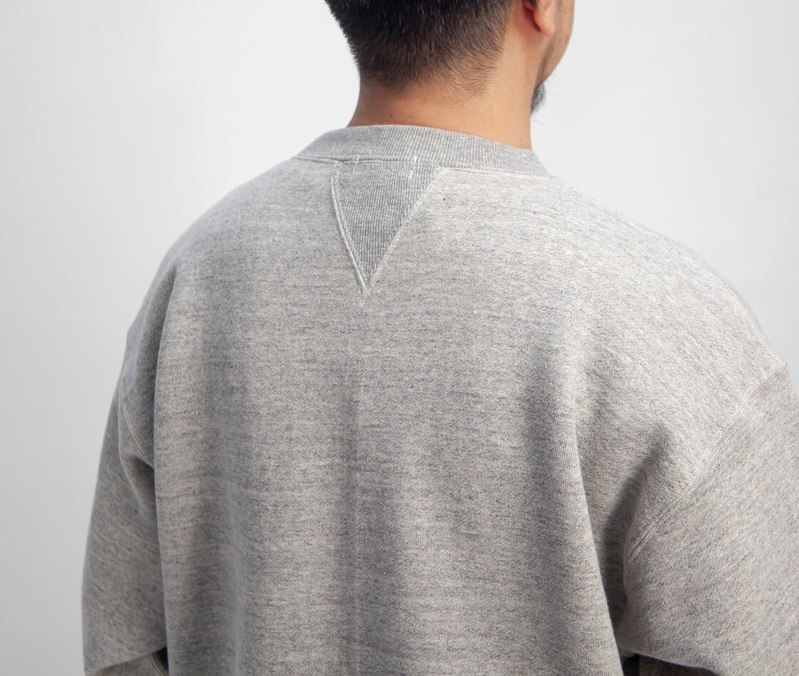後ろ身頃側にも付けられた首元のはめ込みV字ガゼットは、1930年代まで見かけられた、ヴィンテージスウェットお馴染みの両V仕様。