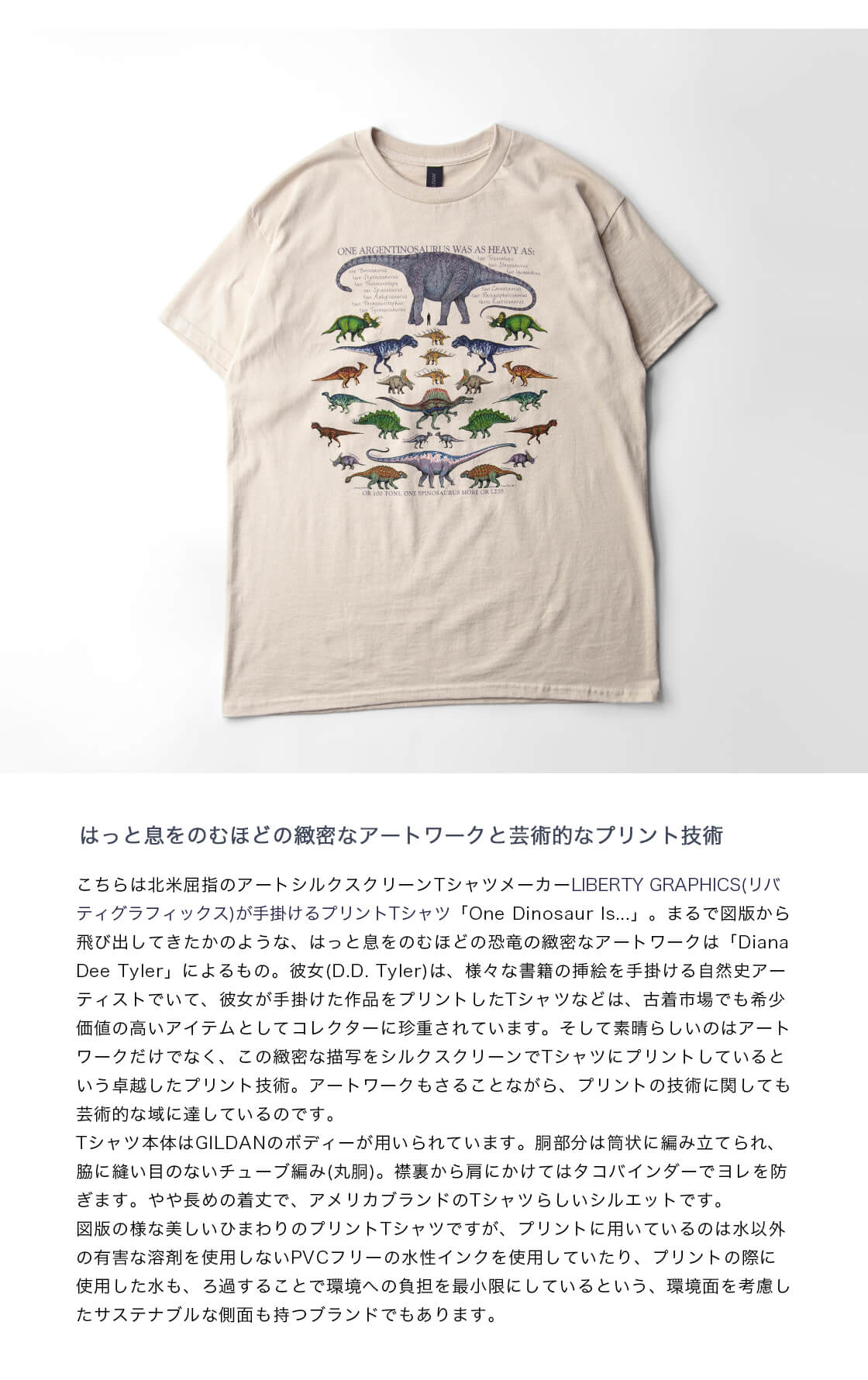 こちらは北米屈指のアートシルクスクリーンTシャツメーカーLIBERTY GRAPHICS(リバティグラフィックス)が手掛けるプリントTシャツ「One Dinosaur Is...」。