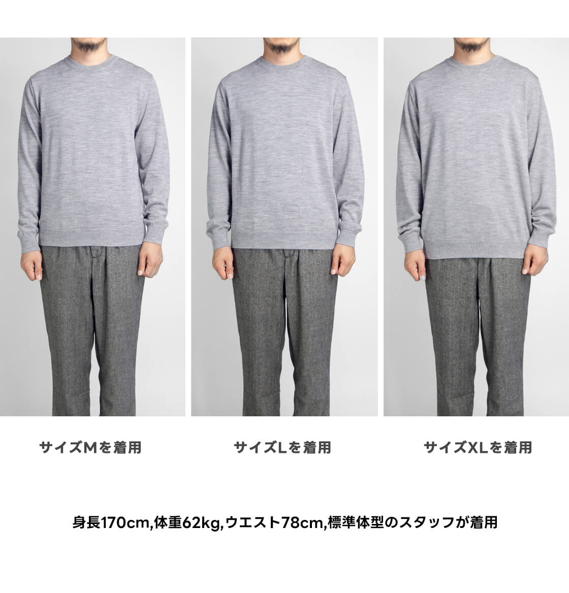 170cm/62kgでMサイズ