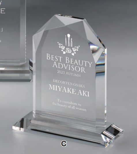 ガラス製品の内部に彫刻をするため、外側にはあとがなく格調高い仕上がりになります。