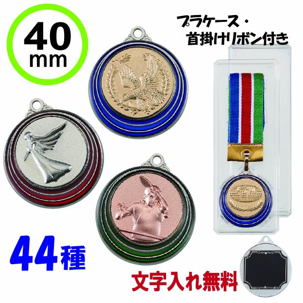 メダル 40mm カラー縁 プラケース・首掛リボン付き