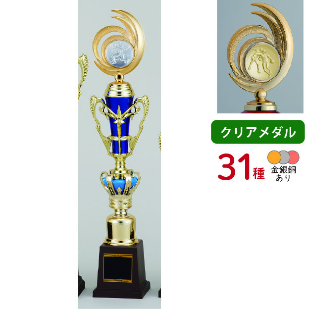各種スポーツ大会など表彰式で使われる、上部にレリーフがついたトロフィーです。