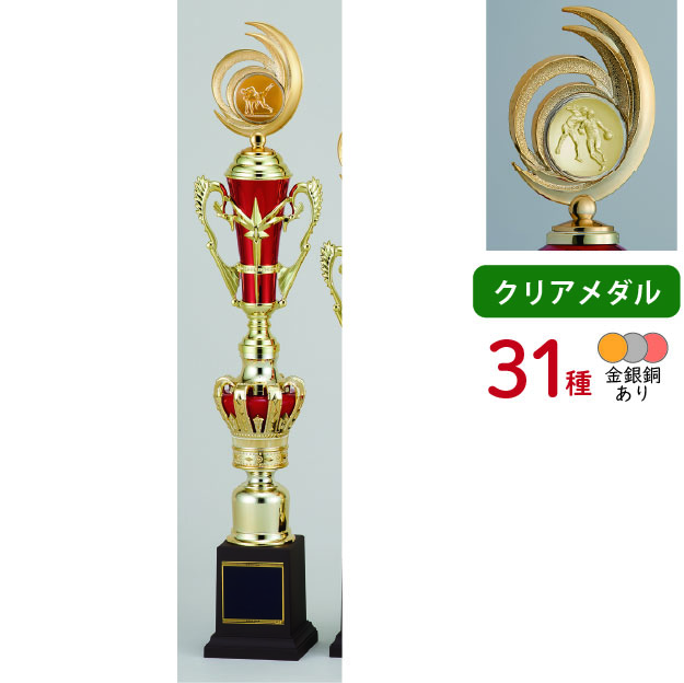 各種スポーツ大会など表彰式で使われる、上部にレリーフがついたトロフィーです。