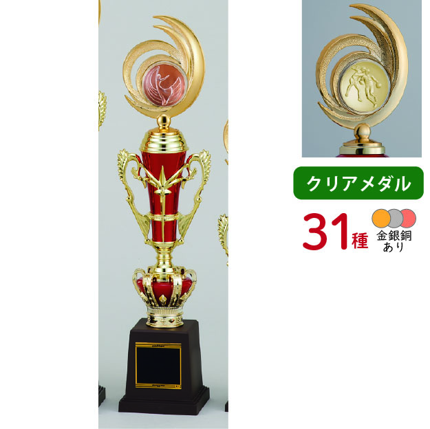 各種スポーツ大会など表彰式で使われる、上部にレリーフがついたトロフィーです。