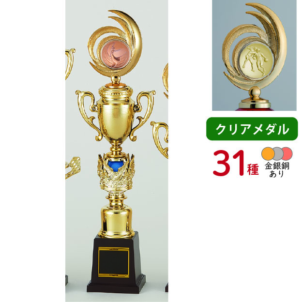 各種スポーツ大会など表彰式で使われる、上部にレリーフがついたトロフィーです。